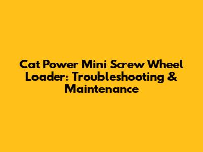Cat Power Mini Screw Wheel Loader: Troubleshooting & Maintenance