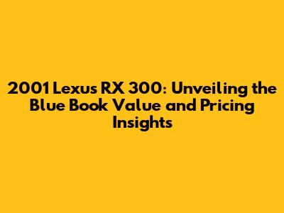 Determining the blue book value of a 2001 Lexus RX 300 involves considering various factors, including condition, mileage, trim level, vehicle history, and market demand. By understanding these factors and conducting thorough research, you can make informed decisions whether you're buying or selling this classic SUV. Remember to inspect the vehicle carefully, negotiate the price wisely, and prioritize proper maintenance to preserve its value. With the right approach, you can navigate the used car market with confidence and get the best possible deal on a 2001 Lexus RX 300.