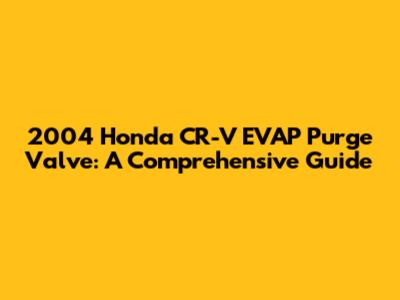 Understanding the 2004 Honda CR-V EVAP Purge Valve