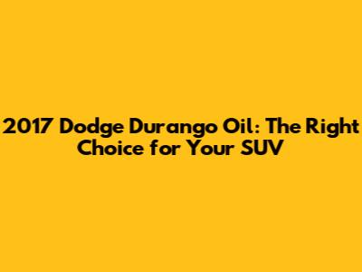 Hey there, Durango enthusiasts! Ever wondered what kind of oil your 2017 Dodge Durango needs to keep it running smoothly? Choosing the right oil type is super important for your SUV's engine health and longevity. It's like giving your Durango a superfood smoothie – keeps everything running perfectly! So, let's dive into the specifics of the 2017 Dodge Durango oil requirements, so you can keep your ride in tip-top shape. We'll explore the recommended oil types, discuss why the correct oil matters, and give you some extra tips to ensure your Durango keeps on trucking for years to come.
