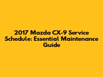 Following the 2017 Mazda CX-9 service schedule is essential for maintaining your vehicle's performance, safety, and longevity. By adhering to the recommended maintenance intervals and addressing any additional maintenance needs, you can ensure that your CX-9 remains a reliable and enjoyable vehicle for years to come. Regular maintenance not only prevents costly repairs but also helps maintain your vehicle's value and ensures your safety on the road. So, stay proactive with your maintenance, and enjoy the peace of mind that comes with knowing your 2017 Mazda CX-9 is in top condition.