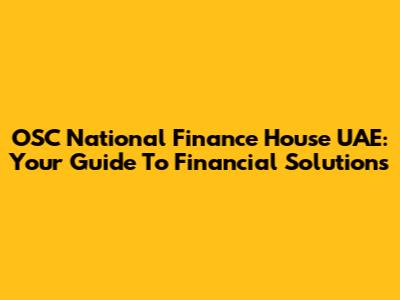 OSC National Finance House UAE: Your Guide To Financial Solutions