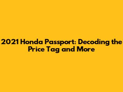 Hey car enthusiasts! Today, let's dive into the fascinating world of the 2021 Honda Passport. If you're pondering the question, "How much is a 2021 Honda Passport?", you've landed in the right spot. We'll break down the pricing, explore the features that make this SUV a hit, and help you determine if it's the perfect ride for you. So, buckle up, grab your coffee, and let's get started!