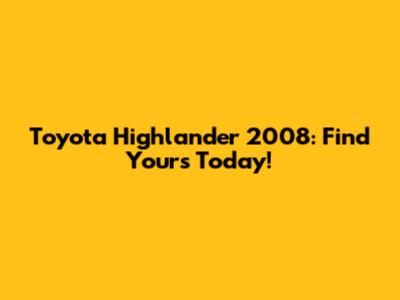 Toyota Highlander 2008: Find Yours Today!