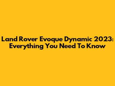 Land Rover Evoque Dynamic 2023: Everything You Need To Know