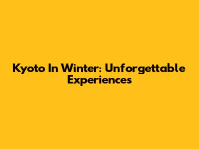 Kyoto In Winter: Unforgettable Experiences