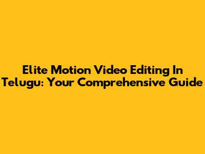 Elite Motion Video Editing In Telugu: Your Comprehensive Guide