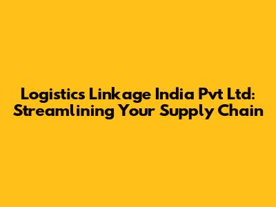 Logistics Linkage India Pvt Ltd: Streamlining Your Supply Chain