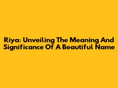 Riya: Unveiling The Meaning And Significance Of A Beautiful Name