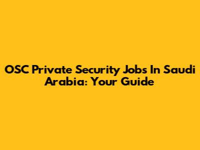 OSC Private Security Jobs In Saudi Arabia: Your Guide
