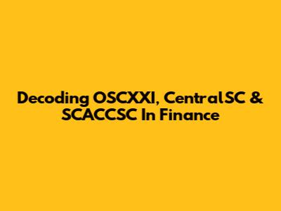 Decoding OSCXXI, CentralSC & SCACCSC In Finance