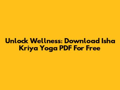 Unlock Wellness: Download Isha Kriya Yoga PDF For Free