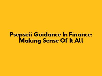 Psepseii Guidance In Finance: Making Sense Of It All