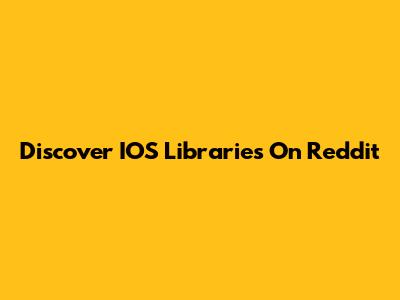 Discover IOS Libraries On Reddit