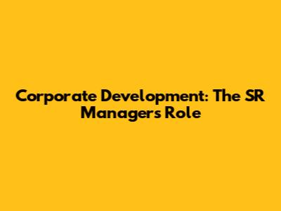 Corporate Development: The SR Manager's Role
