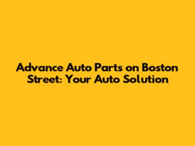 Hey guys! Are you looking for Advance Auto Parts on Boston Street? You've come to the right place! Let's dive into why this auto parts store is a go-to for so many car owners, DIY enthusiasts, and professional mechanics. We'll explore everything from the products they offer to the services you can expect, ensuring you know exactly what makes Advance Auto Parts a valuable resource for keeping your vehicle running smoothly.