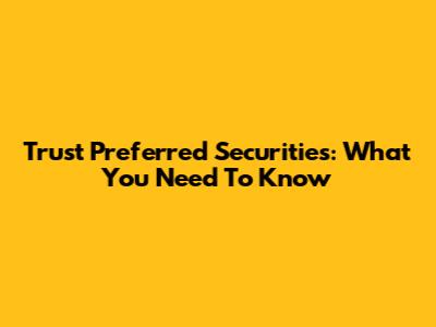 Trust Preferred Securities: What You Need To Know