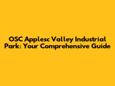 OSC Applesc Valley Industrial Park: Your Comprehensive Guide