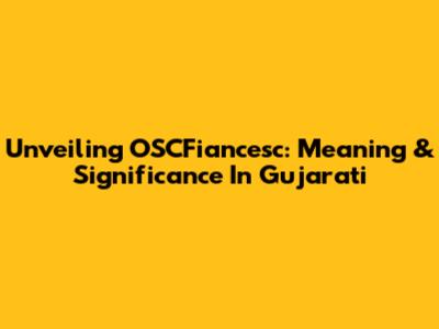 Unveiling OSCFiancesc: Meaning & Significance In Gujarati