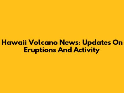 Hawaii Volcano News: Updates On Eruptions And Activity