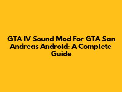 GTA IV Sound Mod For GTA San Andreas Android: A Complete Guide