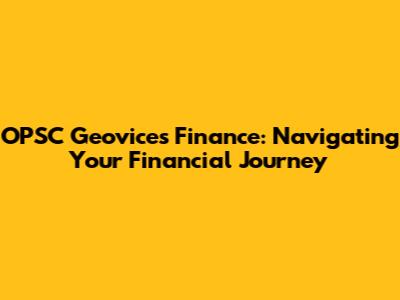 OPSC Geovices Finance: Navigating Your Financial Journey