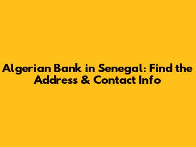Are you looking for the Algerian Bank of Senegal address? Finding the right banking information can sometimes feel like navigating a maze, especially when dealing with international institutions. This comprehensive guide will provide you with all the necessary details to locate the Algerian Bank in Senegal, understand its services, and make the most of your banking experience. Whether you're a business owner, a student, or an individual seeking reliable financial services, this article is tailored to help you connect with the Algerian Bank of Senegal efficiently.