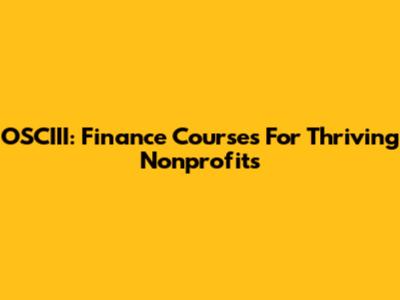 OSCIII: Finance Courses For Thriving Nonprofits