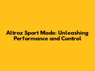 What is Altroz Sport Mode and How Does it Work?