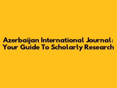 Azerbaijan International Journal: Your Guide To Scholarly Research