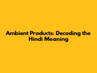 Ambient Products in Hindi: Unpacking the Translation