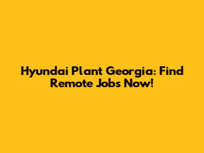 Hyundai Plant Georgia: Find Remote Jobs Now!