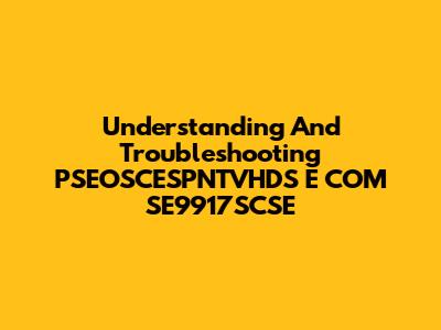 Understanding And Troubleshooting PSEOSCESPNTVHDS E COM SE9917SCSE