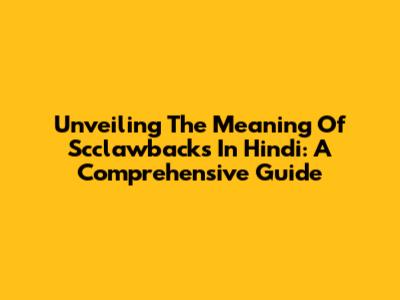 Unveiling The Meaning Of Scclawbacks In Hindi: A Comprehensive Guide