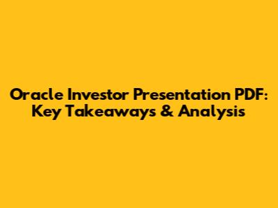 Oracle Investor Presentation PDF: Key Takeaways & Analysis