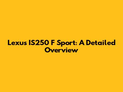 Lexus IS250 F Sport: A Detailed Overview