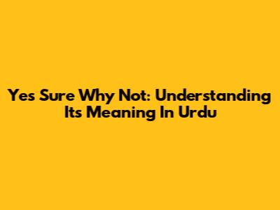 Yes Sure Why Not: Understanding Its Meaning In Urdu
