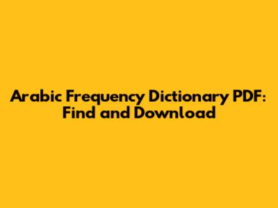 Where to Find an Arabic Frequency Dictionary PDF