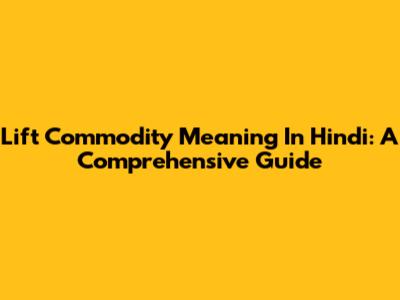 Lift Commodity Meaning In Hindi: A Comprehensive Guide