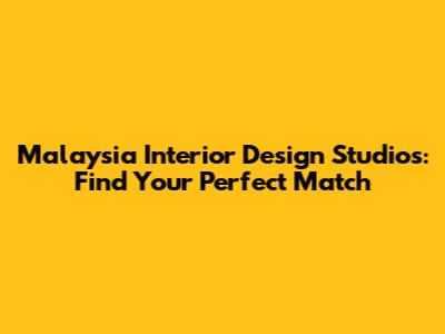 Malaysia Interior Design Studios: Find Your Perfect Match