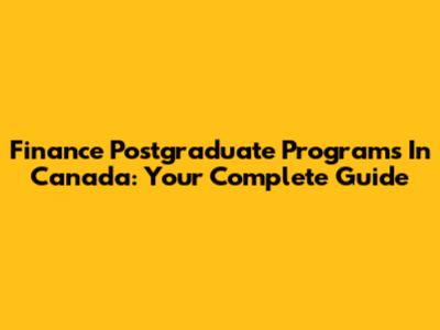 Finance Postgraduate Programs In Canada: Your Complete Guide