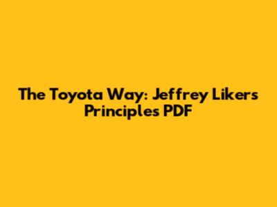 The Toyota Way: Jeffrey Liker's Principles PDF