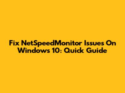 Fix NetSpeedMonitor Issues On Windows 10: Quick Guide