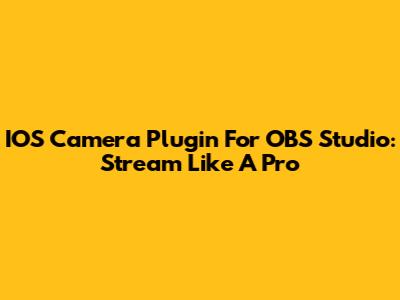 IOS Camera Plugin For OBS Studio: Stream Like A Pro