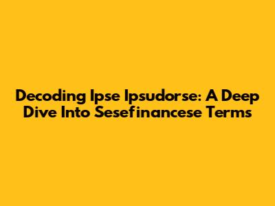 Decoding Ipse Ipsudorse: A Deep Dive Into Sesefinancese Terms