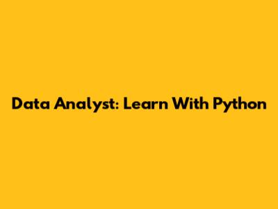 Data Analyst: Learn With Python