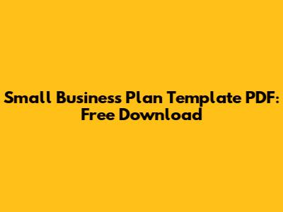 Small Business Plan Template PDF: Free Download