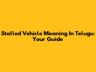 Stalled Vehicle Meaning In Telugu: Your Guide