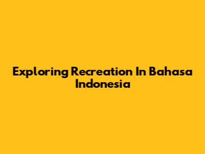 Exploring Recreation In Bahasa Indonesia