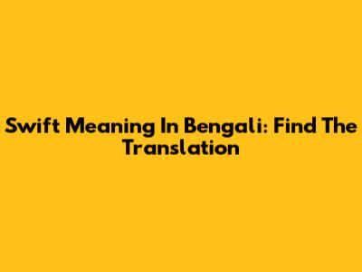 Swift Meaning In Bengali: Find The Translation
